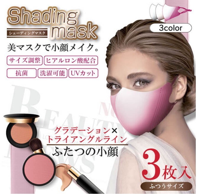 【ベージュ・3枚入】マスク 洗える 抗菌 おしゃれ シェーディングマスク 3P レディース 女性 | 美マスクで小顔メイク!