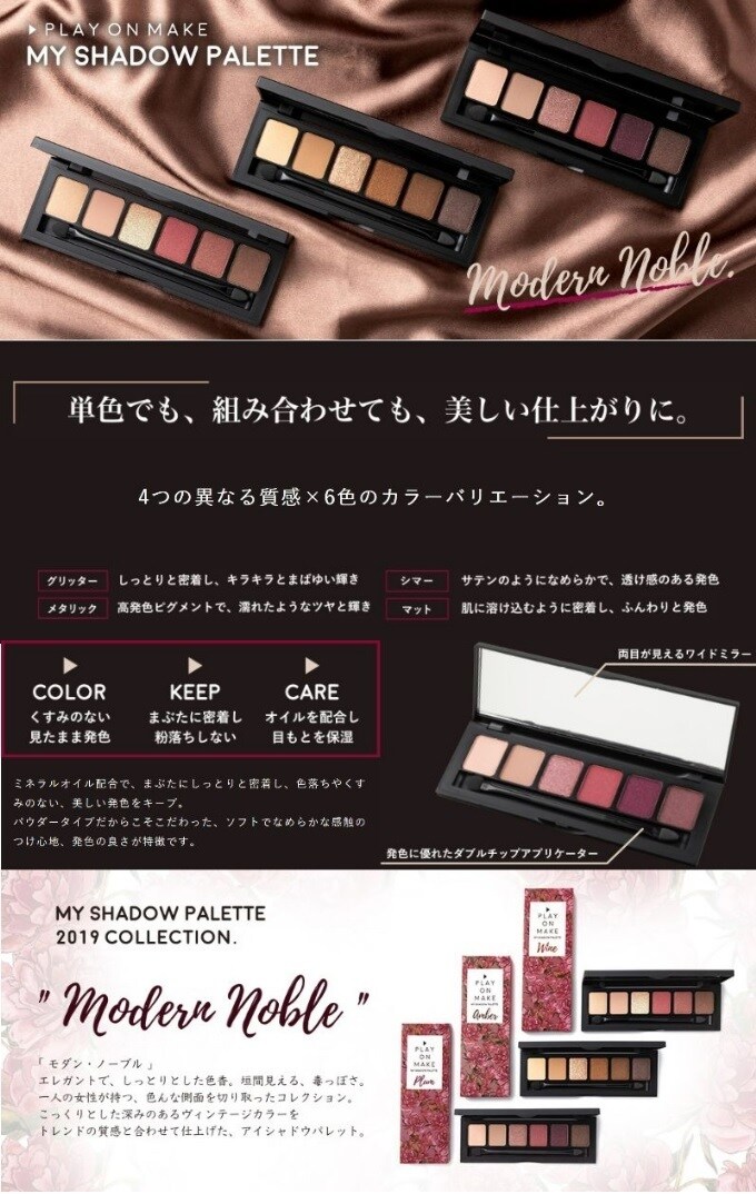 【Amber/ブロンズブラウン系】プレイオンメイクマイシャドウパレット(塗るだけでお洒落) | 4つの異なる質感×6色のカラーバリエーションで「マスクの外」は気を抜かない!!