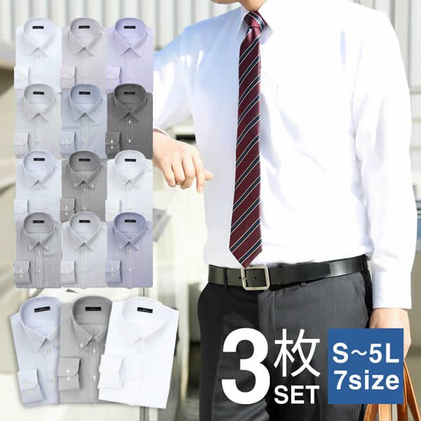 【Fset/L(41)】ワイシャツ長袖 3枚セット | ベーシックで飽きの来ない組み合わせです☆