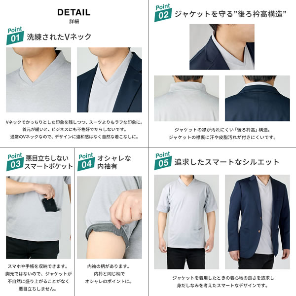 ジャケットの襟が汚れにくい「後ろ襟高」構造。