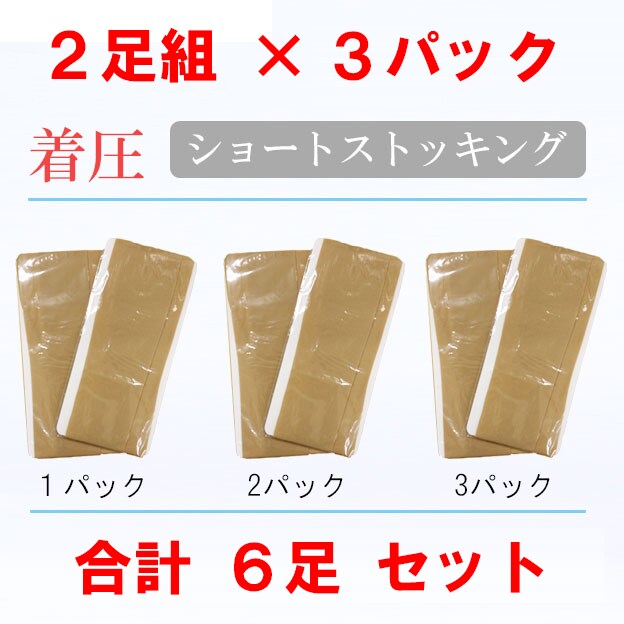 - 【6足/ナチュラルベージュ】着圧ショートストッキング (22-25cm)ひざ下までショートタイプ。