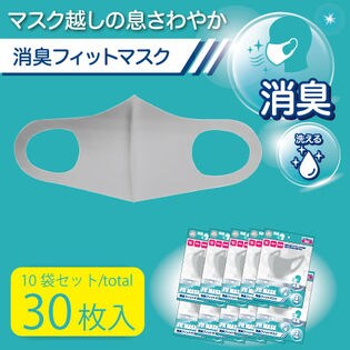 【3枚入り×10袋/グレー】消臭フィットマスク同色30枚組 | マスク越しの息さわやか消臭抗菌!