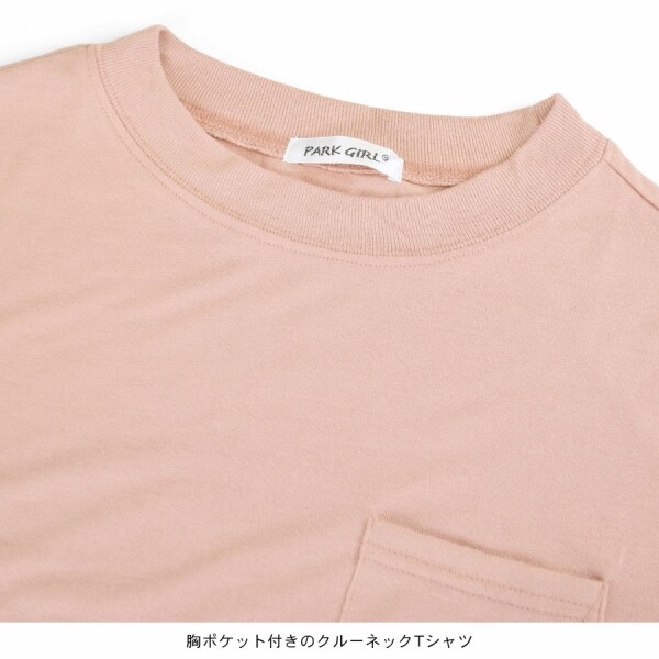 - 接触冷感素材胸ポケット付き五分袖オーバーサイズTシャツ