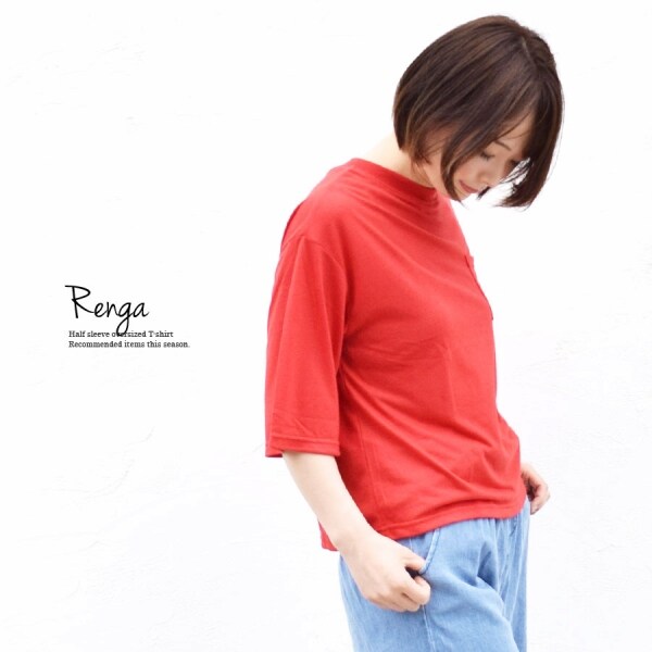 接触冷感素材胸ポケット付き五分袖オーバーサイズTシャツ | ゆったりとしたサイズ感でヌケ感をプラスするオーバーサイズTシャツ♪