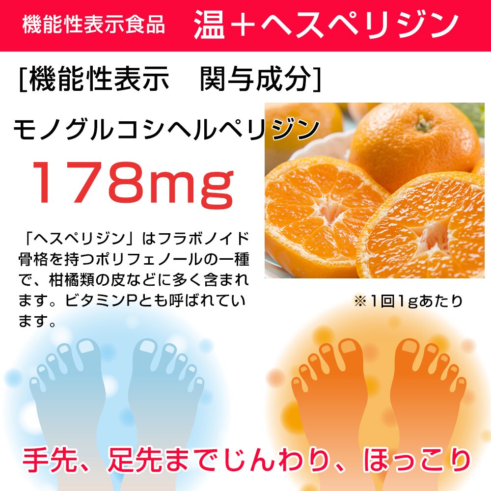 【60回分】 温+ヘスペリジン [機能性表示食品] 60g ※賞味期限2021年10月まで | 末端の冷えを感じる方に! ヘスペリジン