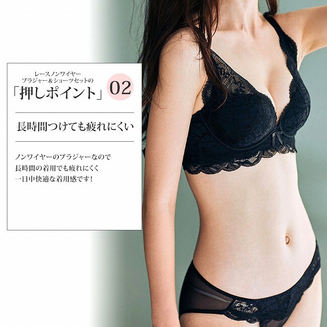 ・ノンワイヤーのブラジャーなので長時間の着用でも疲れにくく一日中快適な着用感です!