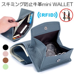 - 【ブルー】スキミング防止牛革ミニウォレット