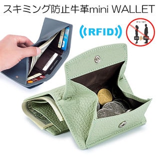 - 【ネイビー】スキミング防止牛革ミニウォレット