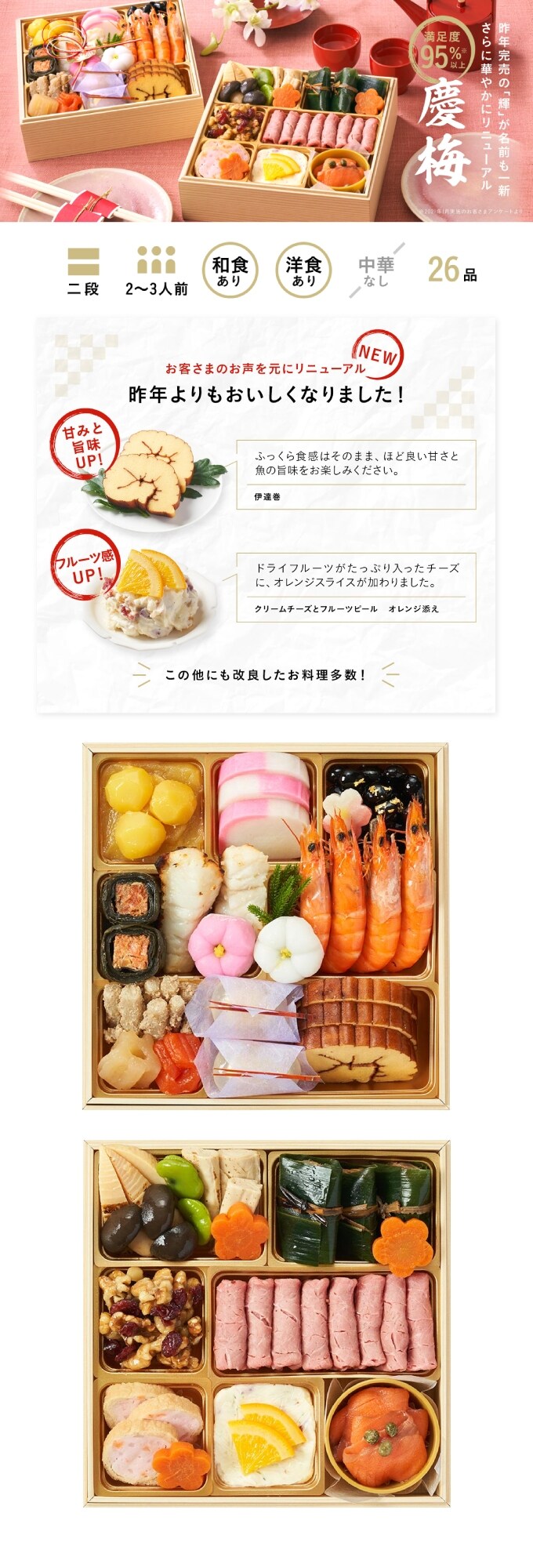 - 【12/30午前中着】【2-3人前/26品目2段】 Oisix肉料理充実の和洋おせち「慶梅」