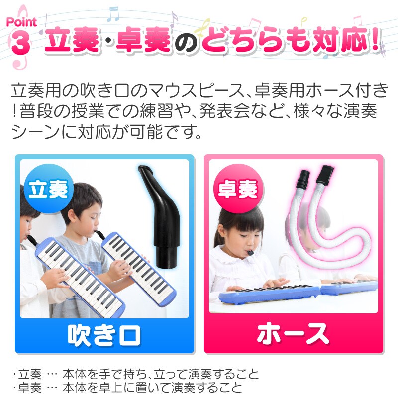 - 【ブルー】鍵盤ハーモニカ ケース ホース 吹き口 32鍵盤 卓奏用パイプ