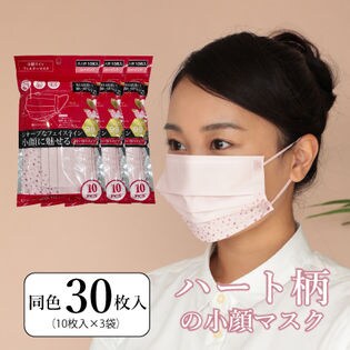 【10枚入り×3袋/ピンク】ハート柄ラインフィルターマスク | 可愛いハート柄でシャープなフェイスラインに