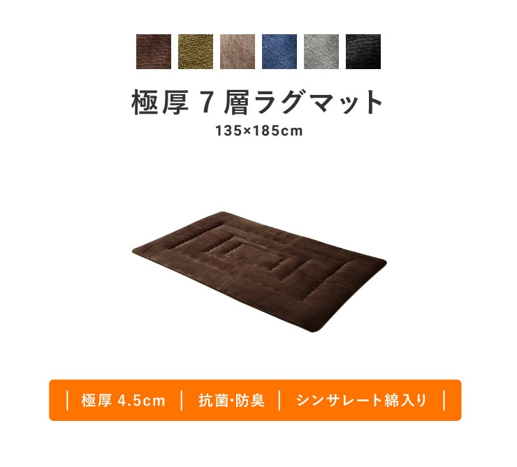 【ブラック】シンサレート使用あったか極厚7層ラグマット 135x185 | 人気の6層ラグが7層ラグになって新登場!よりふかふかになった極厚ラグです。