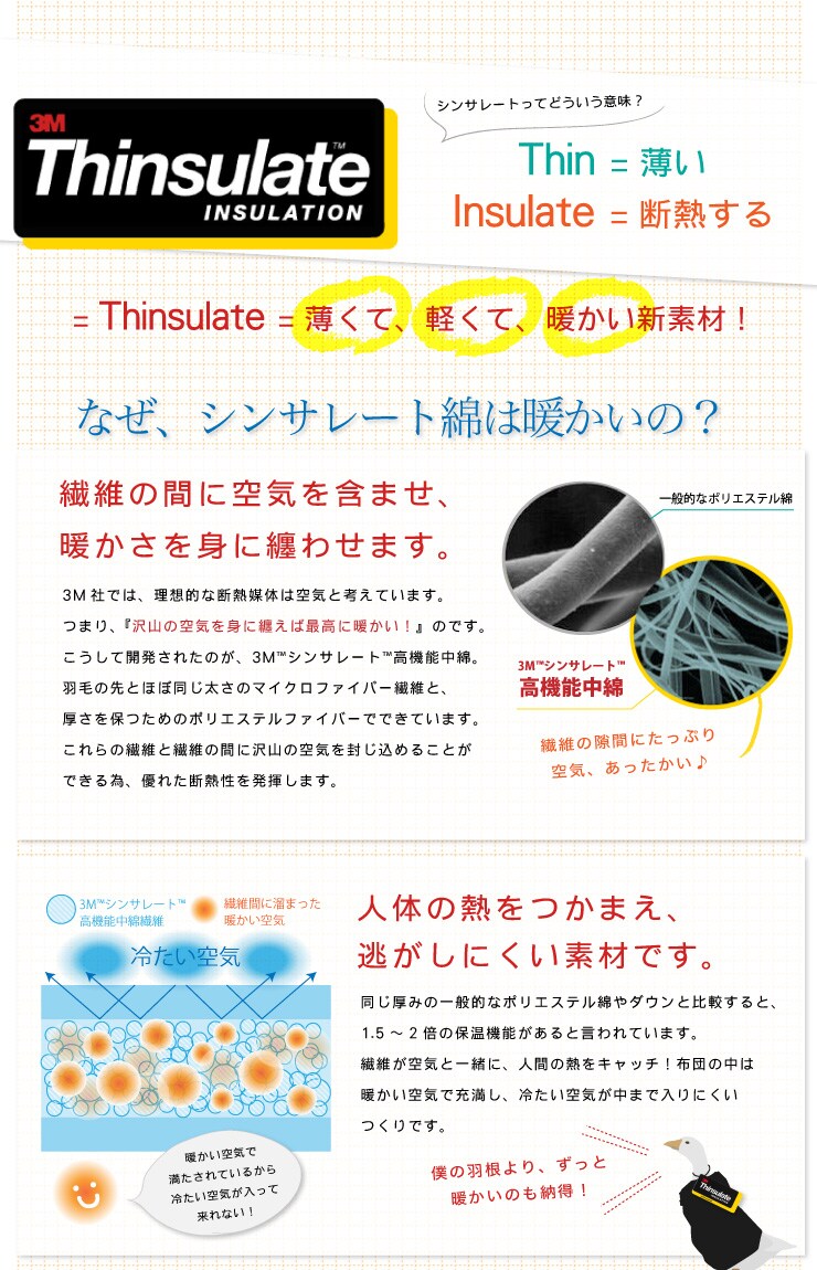 中材:シンサレートシート、アルミ不織布、ポリエステルわた、固わた、ポリエチレンシート