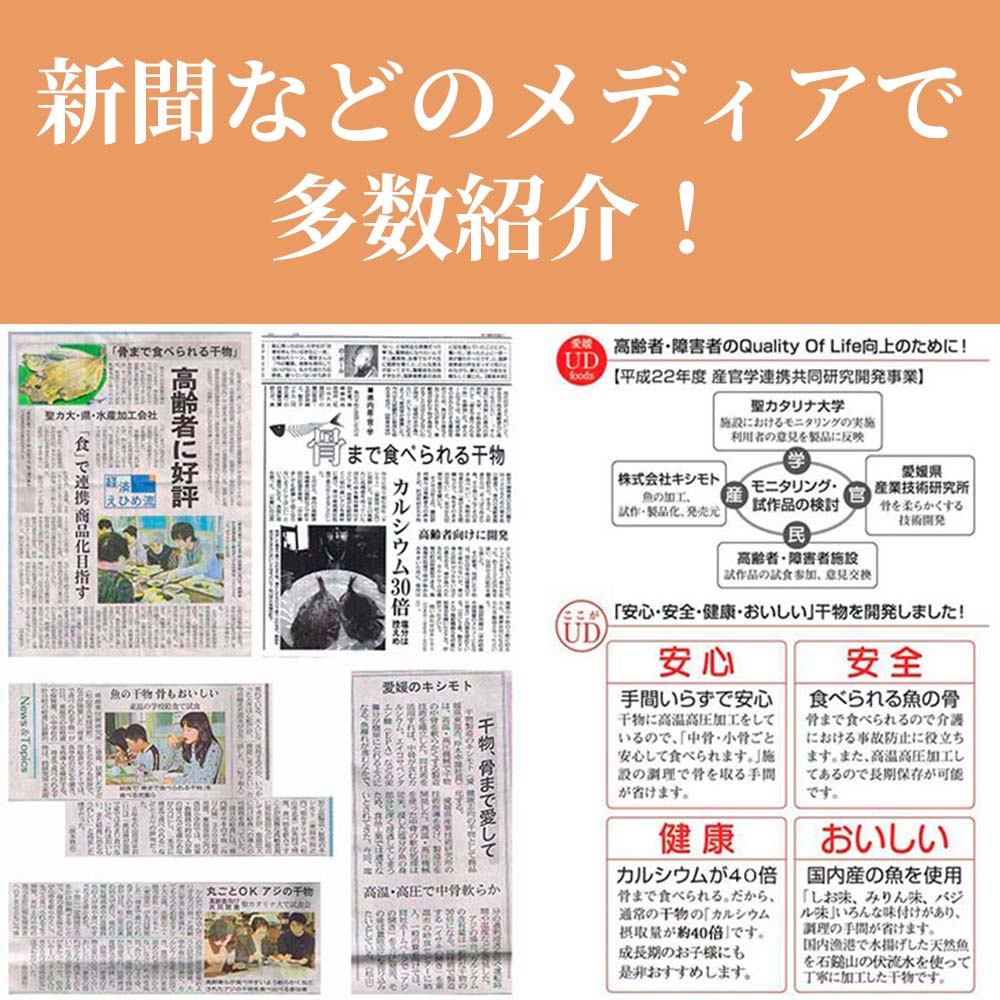 愛媛県産業技術研究所と聖カタリナ大学と高齢者施設・障害者施設と協同で商品作りをした「骨まで美味しい」「からだにやさしい」「簡単便利」な干物『まるとっと』