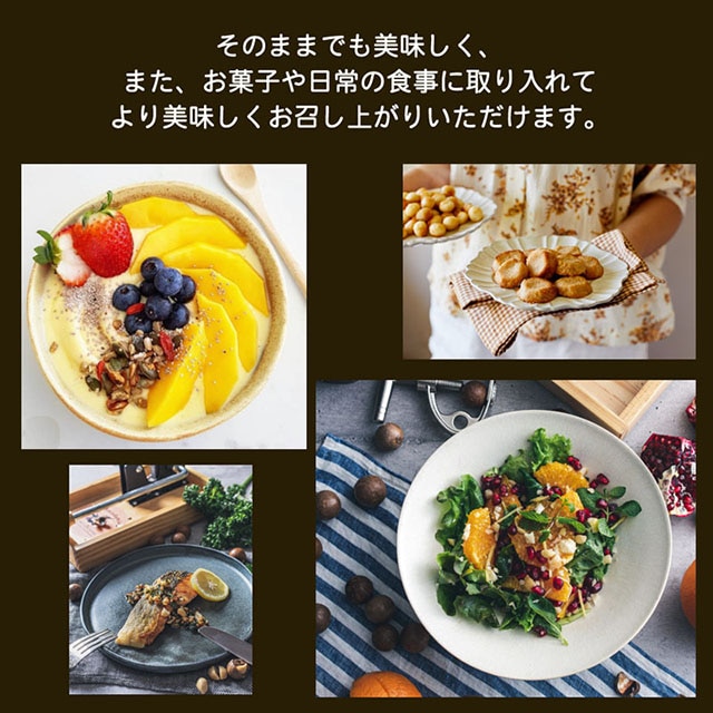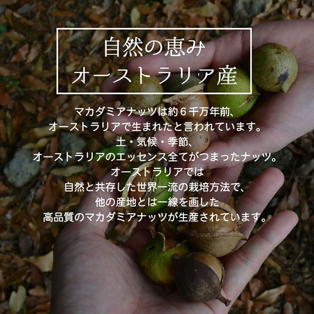 サクサクとした歯触りと上品でまろやかな風味のマカダミアナッツ。無塩・無添加だからこそ、自然の美味しさをご堪能いただけます。