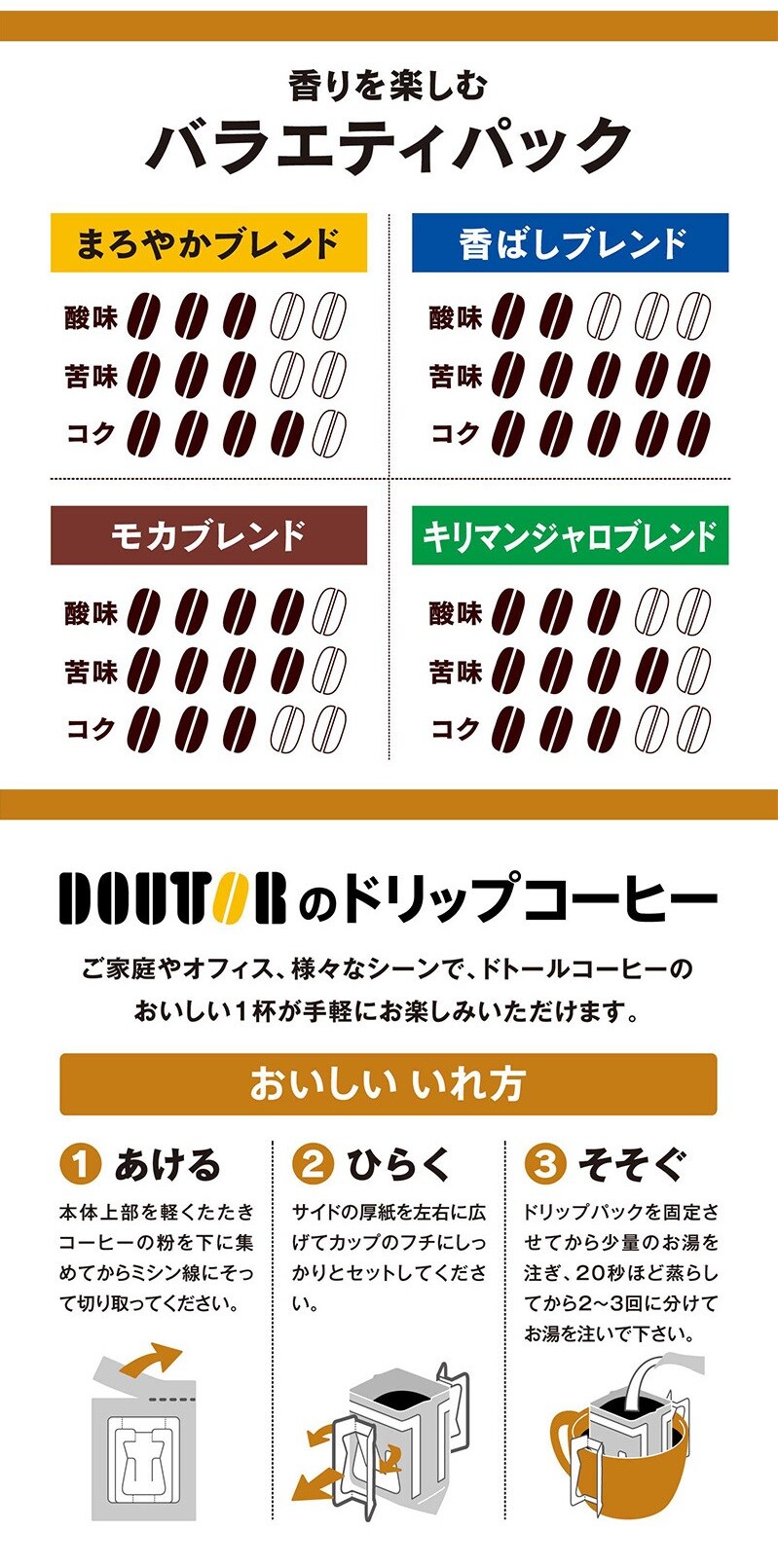 【計80パック】ドトールコーヒー 香り楽しむバラエティブレンド 4種セット | ドトールの人気コーヒー4種をご自宅や職場で手軽にいつでもお楽しみ頂けます♪