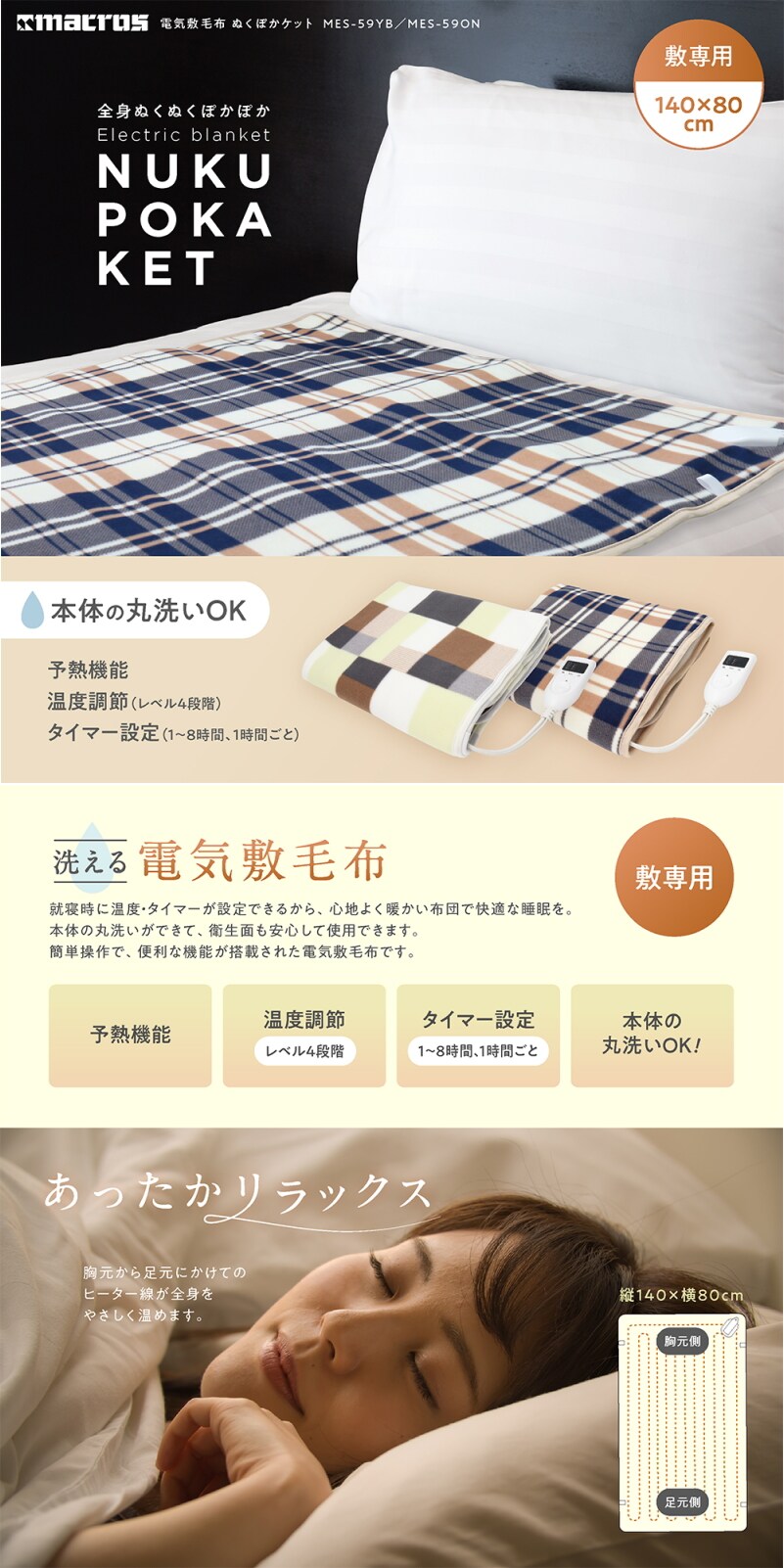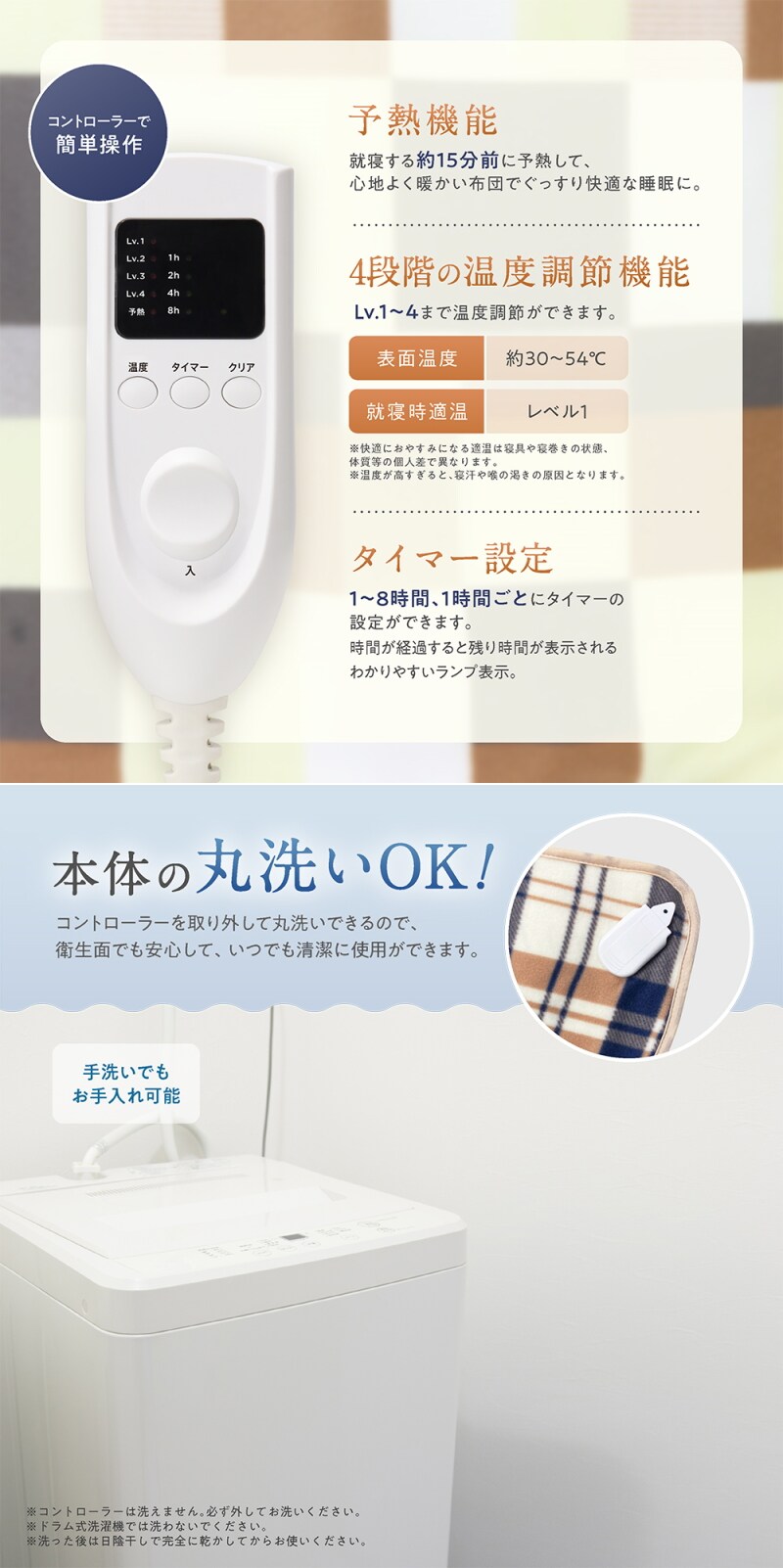 電気敷毛布 ぬくぽかケット【オレンジネイビー】丸洗いOK◎嬉しい機能がたくさんついた電気毛布 | 予熱機能でどんなに寒い夜でも常にポカポカ!布団で就寝できる喜びが実感できる電気毛布!