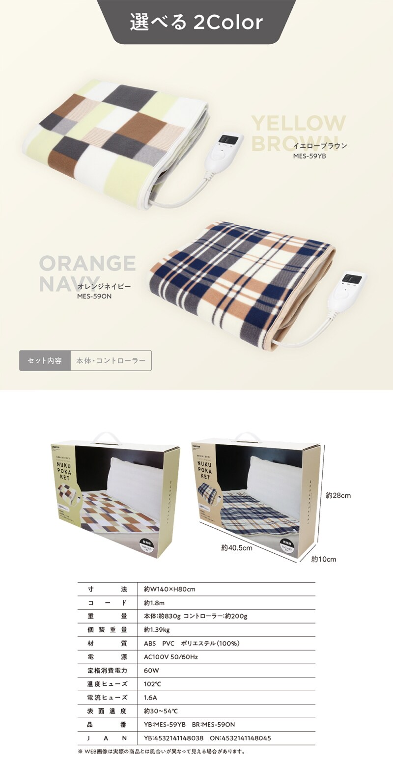 - 電気敷毛布 ぬくぽかケット【オレンジネイビー】丸洗いOK◎嬉しい機能がたくさんついた電気毛布