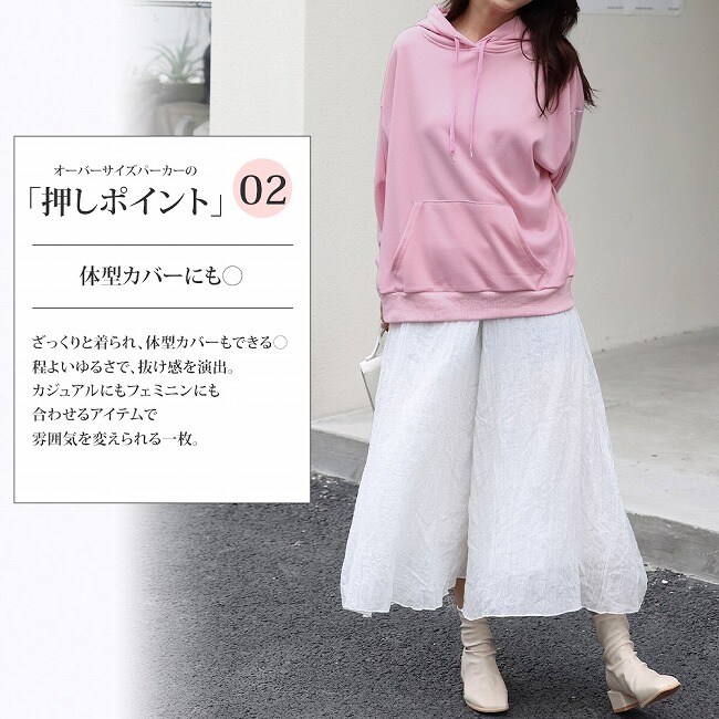 ・オーバーサイズのパーカーでゆったり楽に着られる☆カジュアルに着こなすにはゆったりめのサイズ感が丁度いい♪