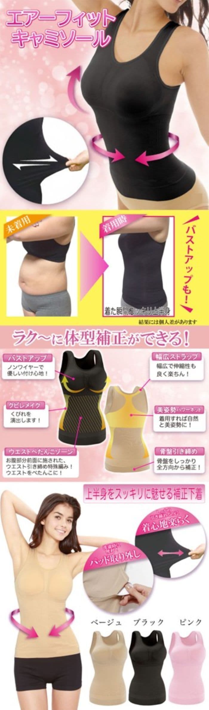 憧れのぺたんこお腹が目指せる、着圧仕様の補正キャミソール!