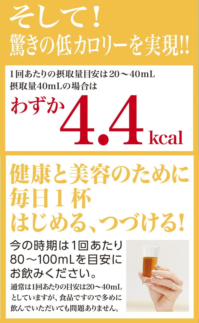 ・お召し上がり方:計量カップにて1日20から40mlを目安にお召し上がり下さい。 開封後はフタを完全に閉め、冷蔵庫(10℃以下)にて保管の上 なるべくお早めにお召し上がり下さい。