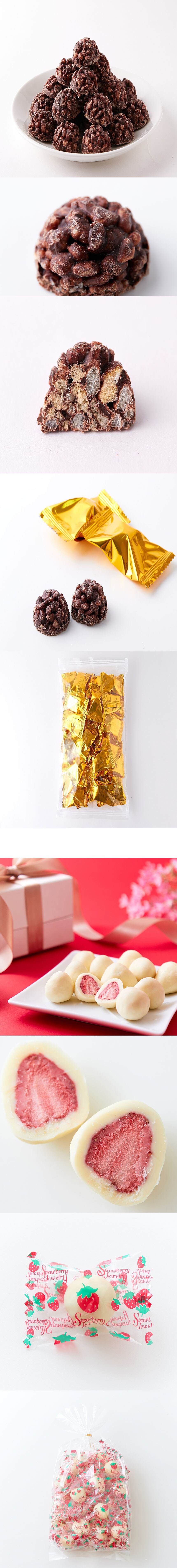 甘味と酸味のバランスが絶妙な苺だけを、旬な美味しさそのままにフリーズドライし濃厚な高品質ホワイトチョコで贅沢にたっぷりコーティング。