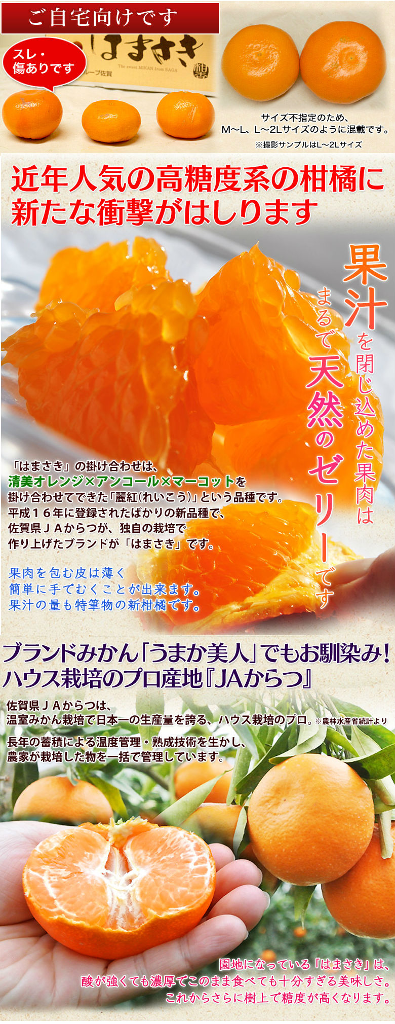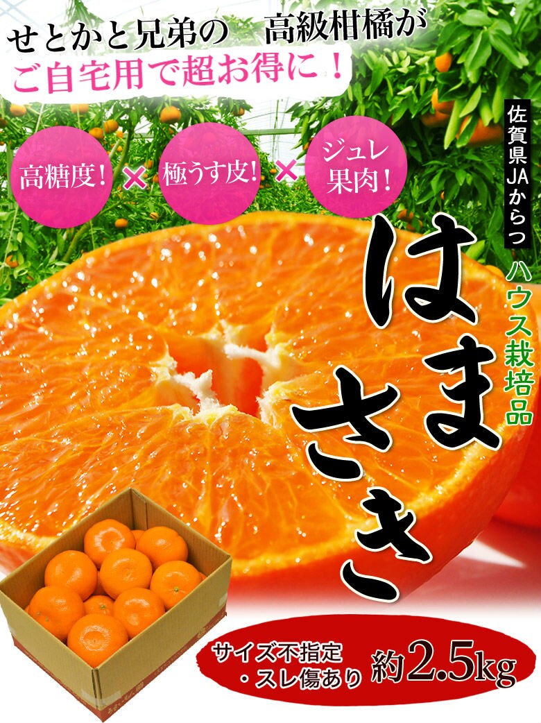 【2.5kg】せとかの兄弟の高級みかん はまさき※サイズ不揃い、傷あり | JAからつのまるで天然ゼリーのようなおいしいみかん