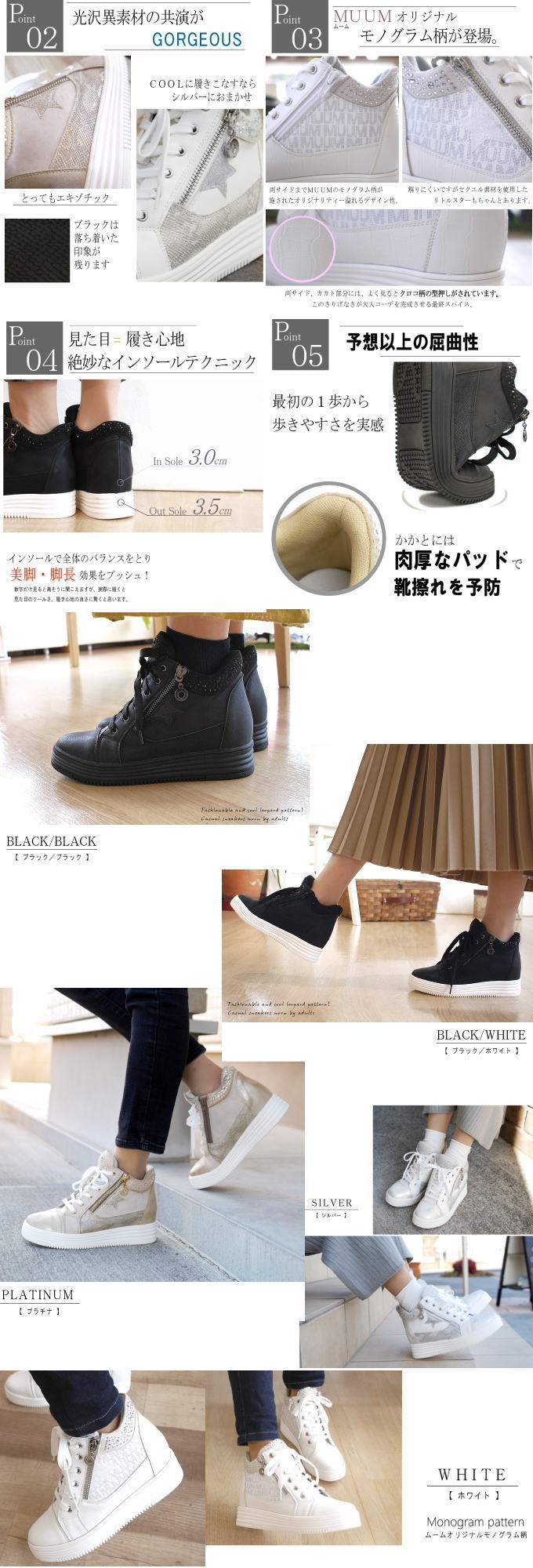 クール&ゴージャススタイル・ハイカット・インソールスニーカー★ | ボリュームソールにちょっとのインヒールをプラスで綺麗に見せる♪