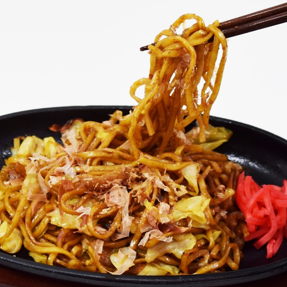 めん(小麦粉(国内製造)、植物油脂、小麦たん白、食塩、卵白/加工でん粉、かんすい、くちなし色素)、キャベツ(国産)、中濃ソース、ウスターソース、肉カス(豚脂)、いため油(なたね油、とうもろこし油、ごま油)、なたね油、オニオンパウダー、粉末ソース、シーズニングオイル/トレハロース、調味料(アミノ酸等)、カラメル色素、増粘剤(キサンタン)、酸味料、酸化防止剤(V.E)、香辛料抽出物、(一部に小麦・卵・えび・牛肉・ごま・大豆・豚肉・りんご・ゼラチンを含む)
