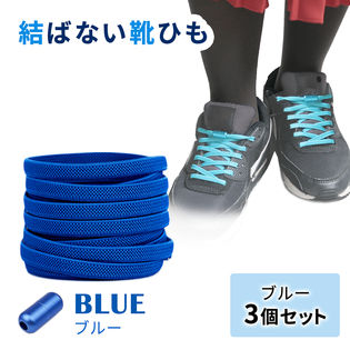 [ブルー3足セット]結ばない靴ひも | ひもを結ばなくてもいいので脱ぎ履きが簡単。伸縮性のあるゴムで、お子様用としても使えます。