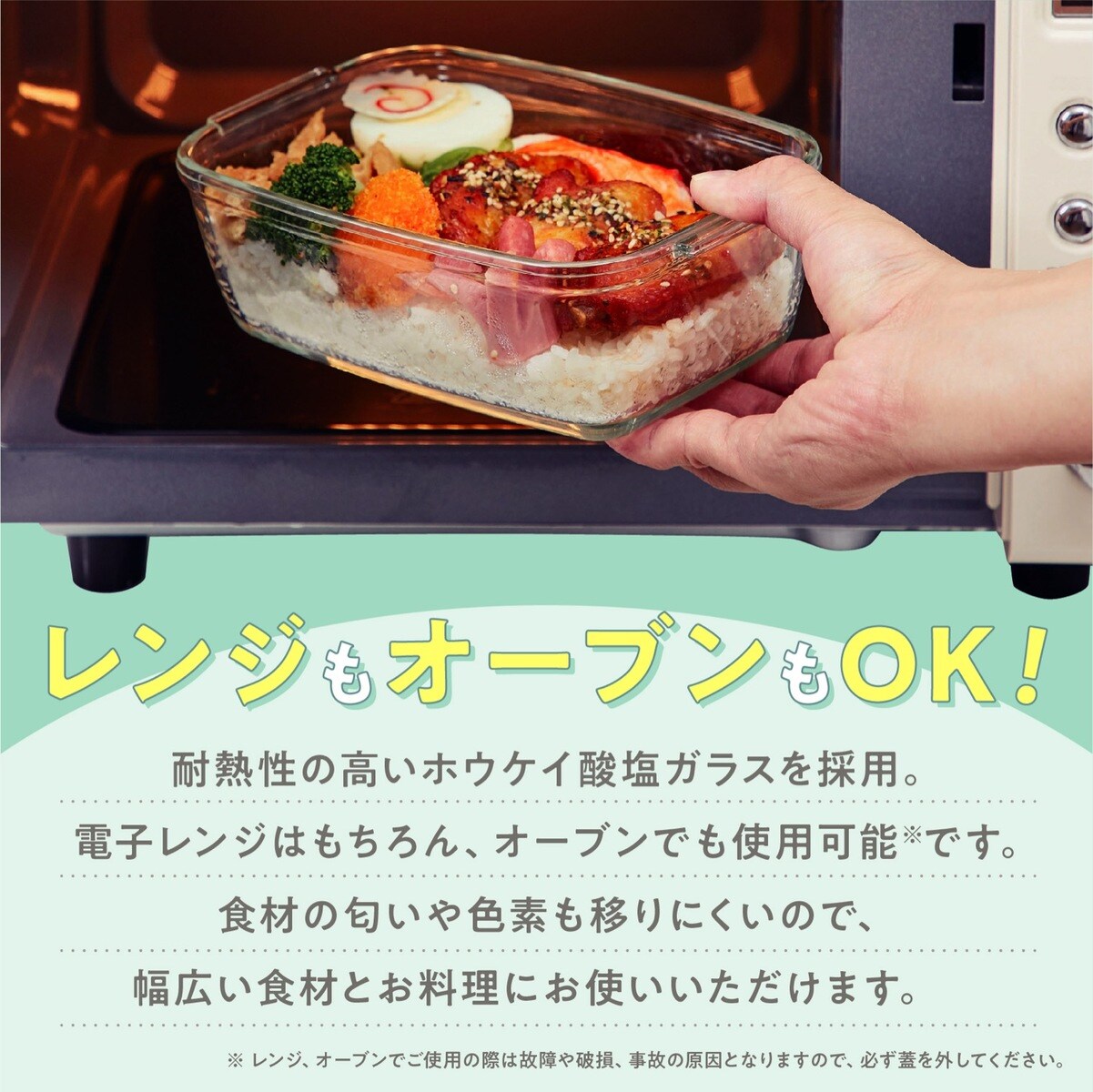 耐熱性の高いホウケイ酸塩ガラスを採用し、電子レンジはもちろんオーブンでも使用可能。