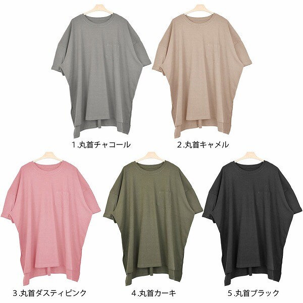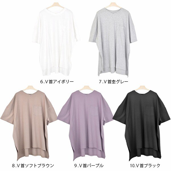 - 選べる丸首orV首前後丈違いゆったりBIGTシャツカットソー