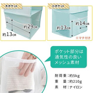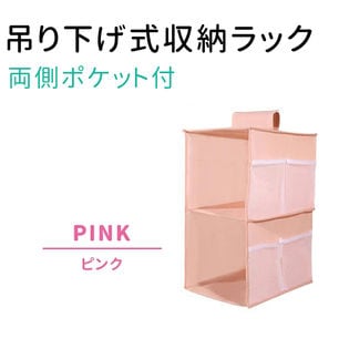 - [ピンク]吊り下げ式収納ラック (両側ポケット付)
