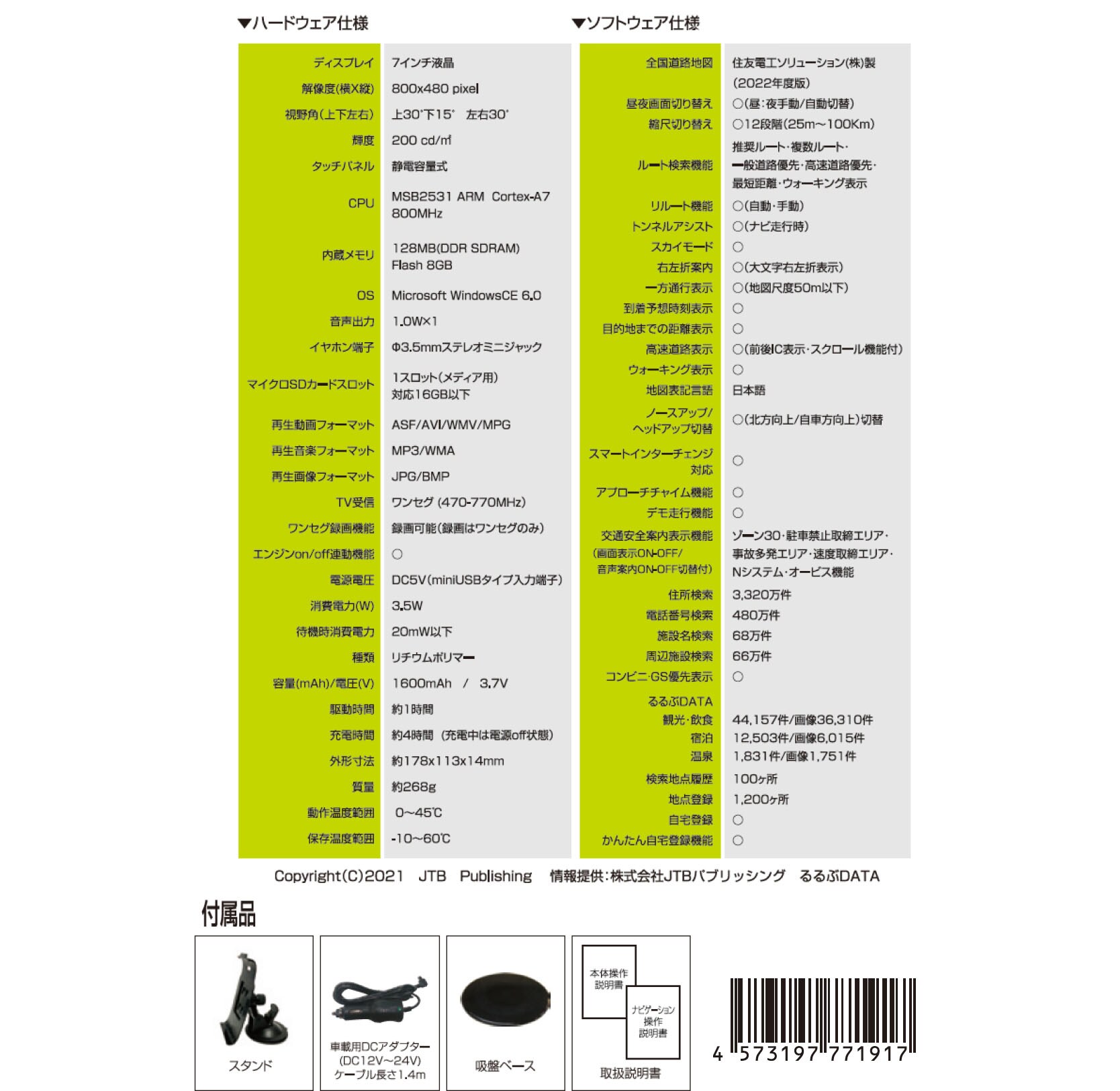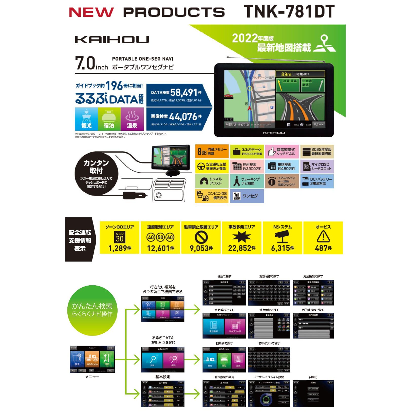 7インチワンセグポータブルナビゲーション TNK-781DT | 2022年度版 最新地図搭載