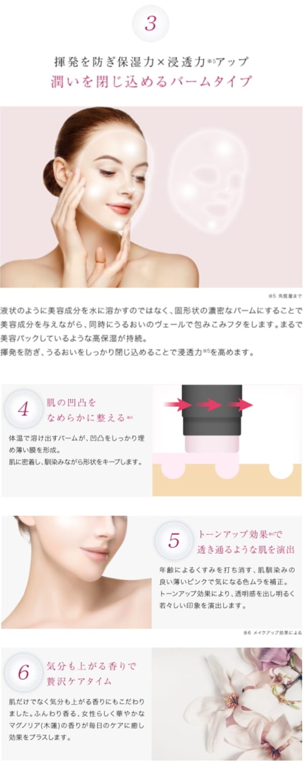 ・使用方法:洗顔後、化粧水でお肌を整えてから、バームでお肌を引き上げるように使用します。