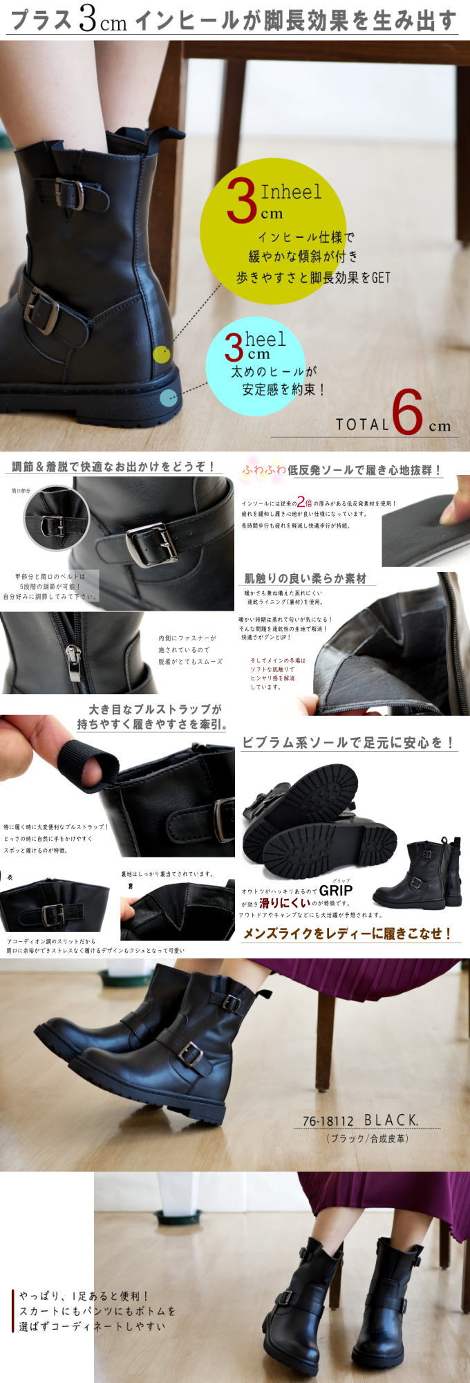 インヒール・エンジニアショートブーツ | 大人カジュアルやきれいめ服にも似合うショートエンジニア♪