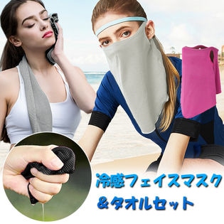 水にぬらすだけでひんやり涼しいフェイスマスクとタオルのセットです