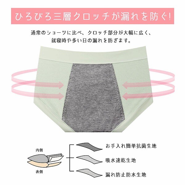 多い日夜漏れに安心幅広クロッチ生理用サニタリーショーツ | 前後のひろびろ三層クロッチで、就寝時や多い日の漏れを防ぐ★