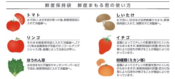 鮮度まもる君(袋タイプ)6点セット | フレッシュな野菜や果物の鮮度を長持ちさせる保存袋。ご家庭のフードロス対策に。