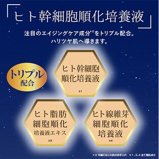 ・原材料/材質/素材:水、BG、グリセリン、ペンチレングリコール、ヒト幹細胞順化培養液、ヒト脂肪細胞順化培養液エキス、ヒト線維芽細胞順化培養液、リンゴ果実培養細胞エキス、ブドウ果実エキス、パルミチン酸アスコルビルリン酸3Na、アスコルビルグルコシド、アスコルビルリン酸Na、水添レチノール、ナイアシンアミド、ガラクトミセス/オリーブ葉発酵エキス、セラミドNP、セラミドAP、セラミドEOP、加水分解エラスチン、加水分解コラーゲン、ヒアルロン酸Na、スクワラン、オリーブ果実油、トレハロース、ベタイン、ラベンダー油、ニオイテンジクアオイ花油、キサンタンガム、ヒドロキシエチルセルロース、クエン酸Na、フェノキシエタノール、EDTA-2Na、PEG-60水添ヒマシ油