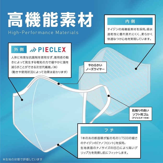 【抗菌マスク】 ピエクレックスマスク <男女兼用フリーサイズ> 洗って繰り返し使える! | 村田製作所と帝人フロンティアが共同開発した新素材「PIECLEX」を使用!