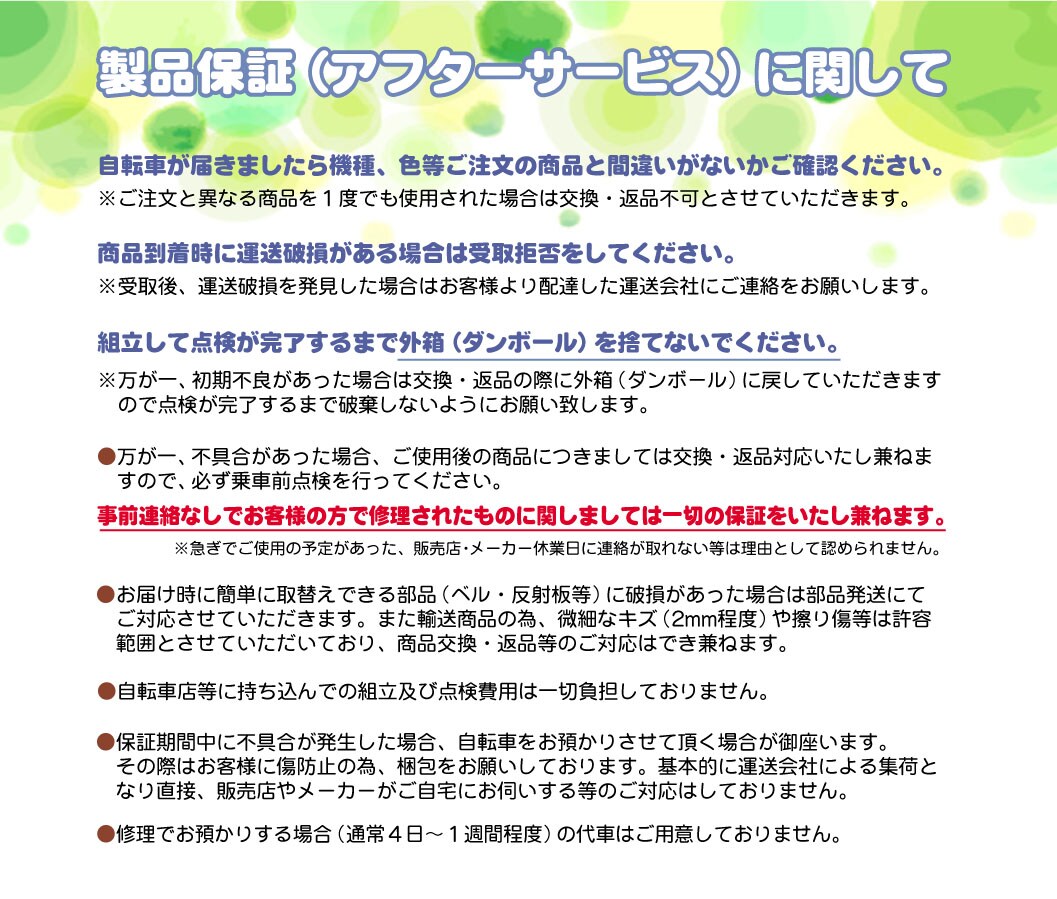 ※自転車は100%完成車ではございません。(完成率90~95%)