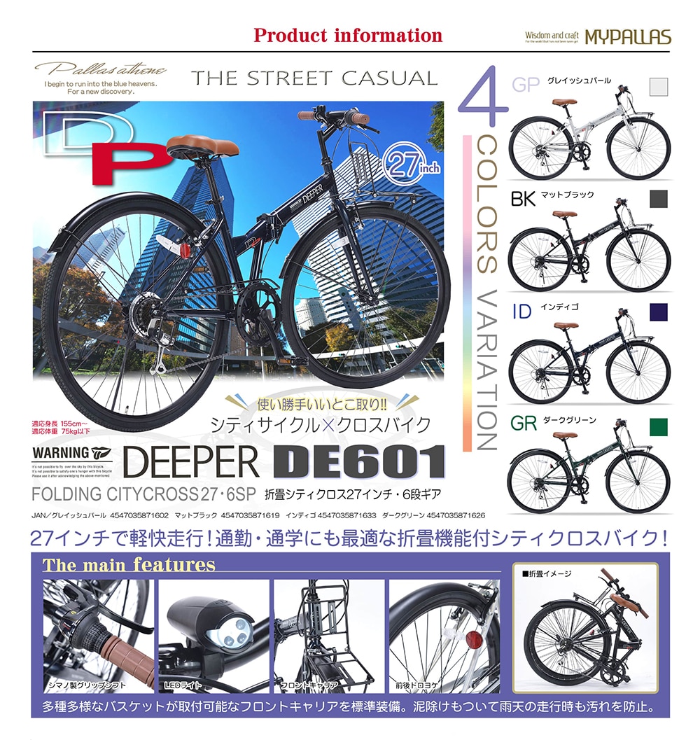 【マットブラック】折畳シティクロス27インチ・6段ギア | 通勤にも適した27インチタイヤ 折畳も可能なシティクロス!