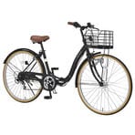 - 【マットブラック】折畳シティサイクル26インチ・6段ギア・オ...