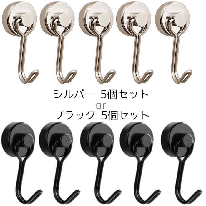- 【ブラック5個】マグネットフック 強力 玄関 かわいい クリップ ネオジム 磁石 5個セット