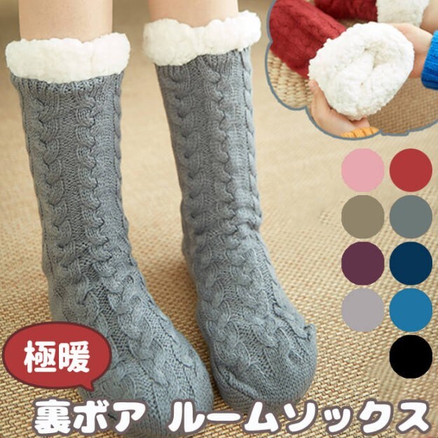 極暖 極厚 裏ボア ルームソックス もこもこ 滑り止め 冬 暖かい レディース