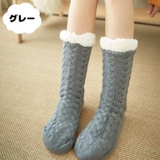 - 【グレー】極暖 極厚 裏ボア ルームソックス もこもこ 滑り止め 冬 暖かい