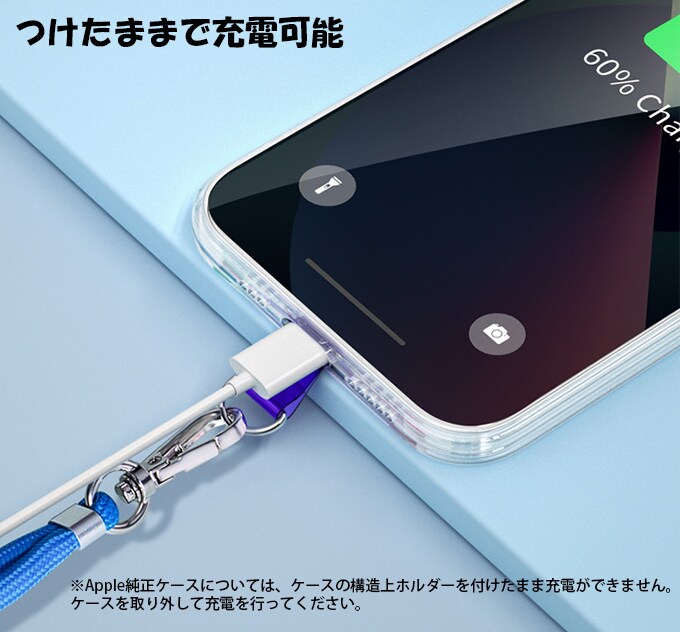 ※Apple純正ケースについては、ケースの構造上ホルダーを付けたまま充電ができません。ケースを取り外して充電を行ってください。