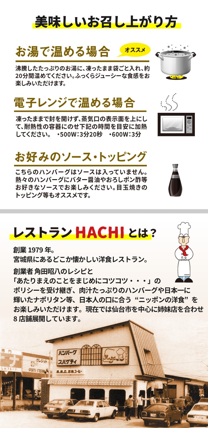 【宮城】黄金比率のハンバーグ 12個【レストランHACHI】 | ふっくらジューシー肉汁あふれる、老舗洋食屋自慢のハンバーグ