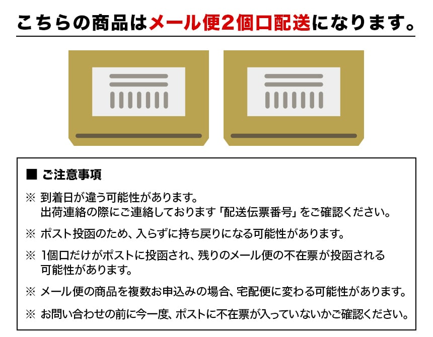 ※配送形態がメール便の商品については、商品の発送完了後、配送伝票番号がマイページに表示されない場合もございます。